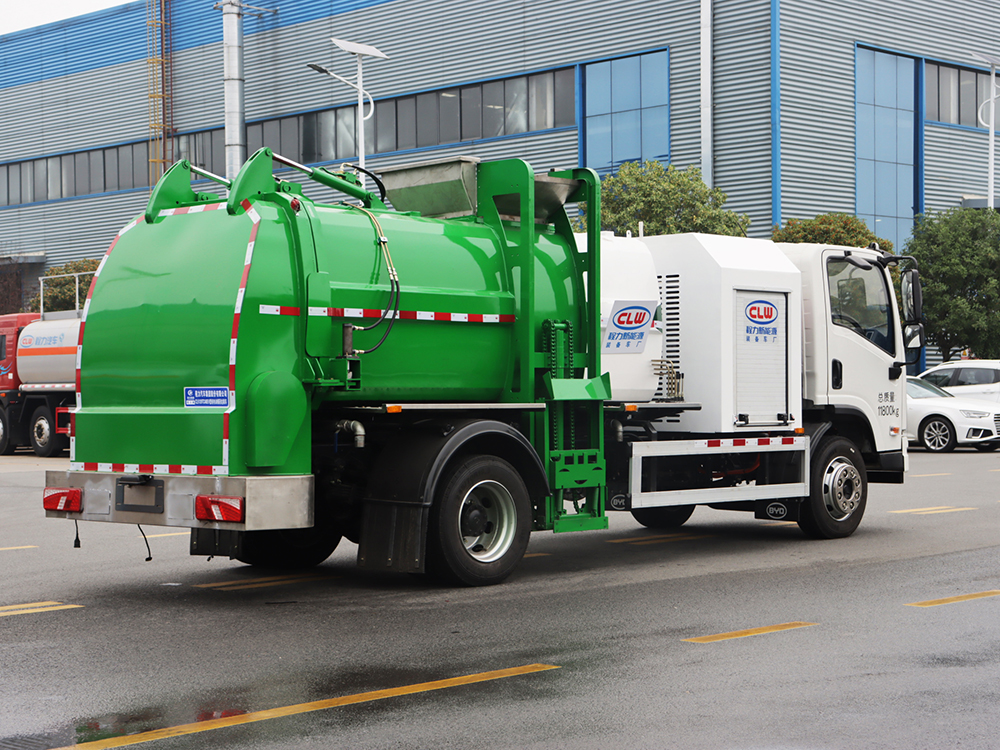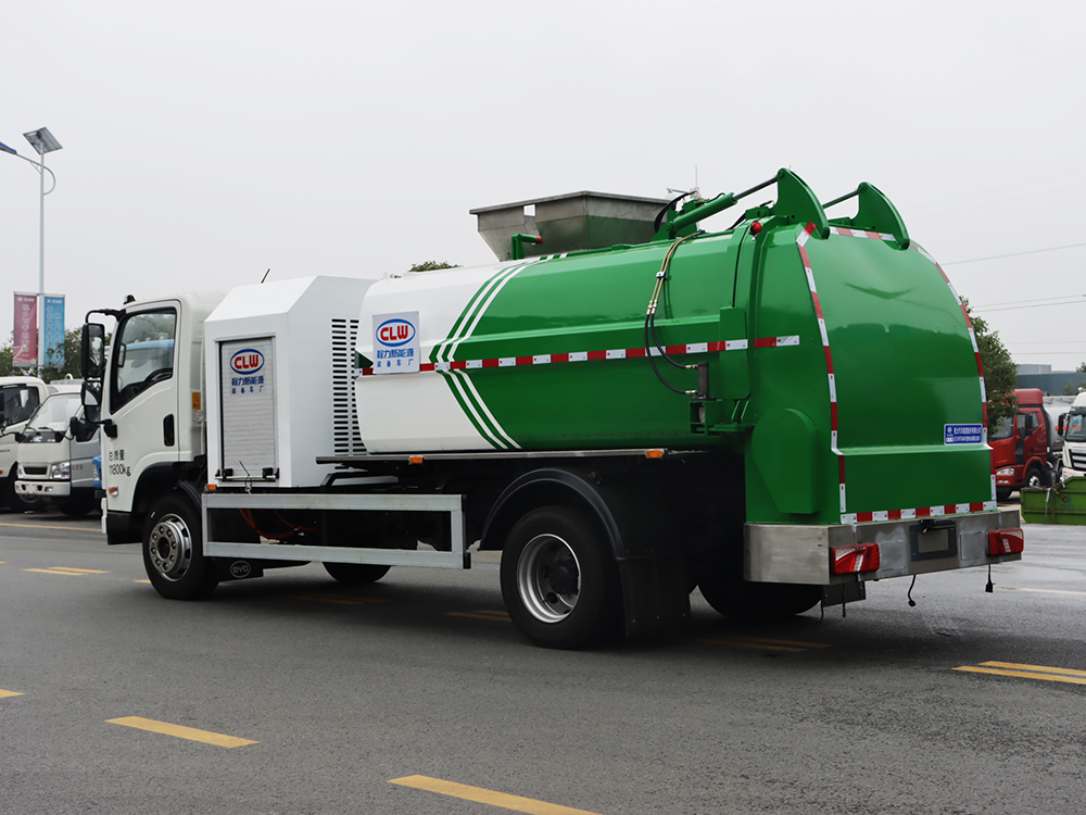 弧形罐體,邊四底五/邊五底六。2.長源/皖液油泵,長源/中梅多路閥,知名液壓油缸。3.全推鏟卸料(不帶舉升功能),具有干濕分離功能。液壓后蓋,后蓋配防腐硅膠密封條。4.后門液壓鎖緊5.鏈條式提升機,可掛120/240升標準塑料垃圾桶。進料口蓋液壓開關。6.駕駛室內電控(提升機外部手動**),后門鎖緊與后蓋開關的操作具有防誤操作。7.箱體帶清洗裝置(液壓馬達帶動高壓泵、帶水箱)。